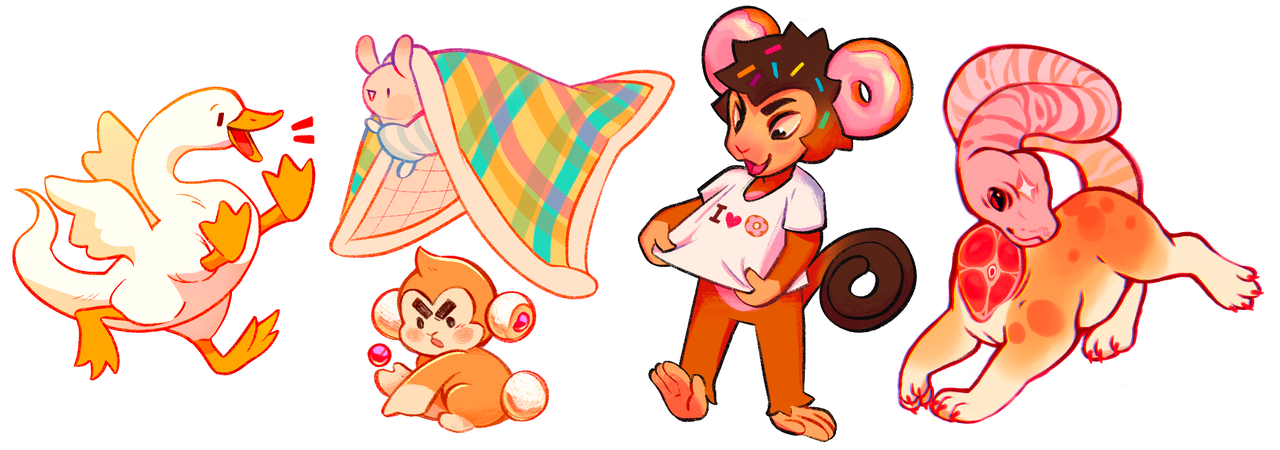 DUNKN' - A donut monkey! He's not too good at math, and might try to buy a donut from you for a banana peel. his hands are always sticky.