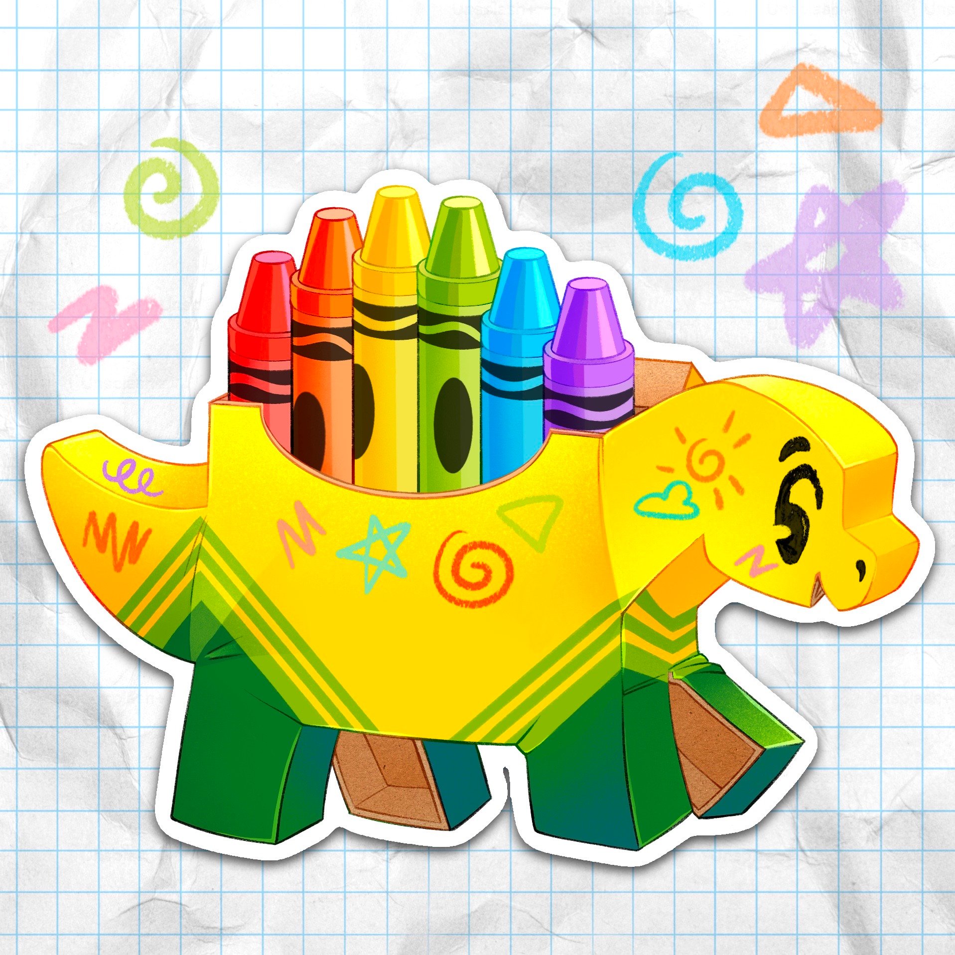A little box of crayons that loves doodling on every surface it can find, including itself!